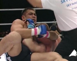 ポジションの体制になり、袈裟固めで締め上げナイマンがタップ、緊張から